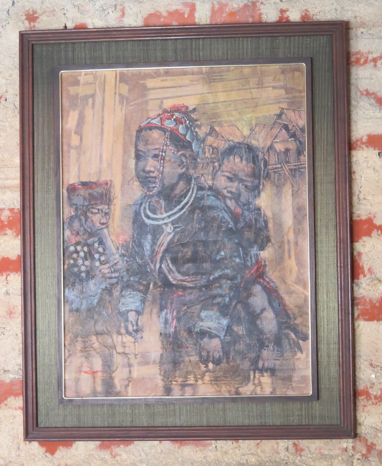 Peinture / huile sur panneau "La femme tibétaine et son enfant" signé Fayat