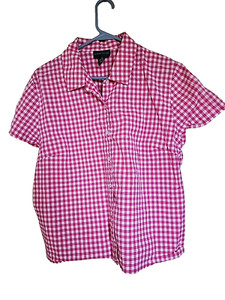 Relativity Womens XL Top Blouse Shirt Pink White Plaid Check Woven Button