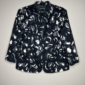 Molly & MaXX Women's Black White Gray Full Zip 3/4 Sleeve Stretch Jacket Size L