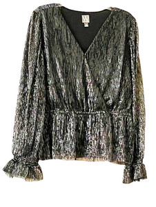 Worthington Women's Dressy Long Sleeve Lined V-Neck Blouse Black Metallic XL