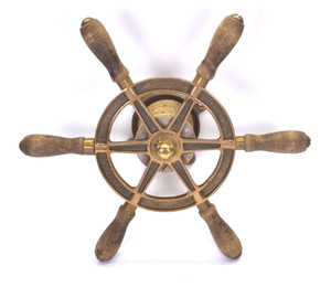 PERKO Antique 12" Brass Ships Wheel Vintage wall mount Decor Boat, Beach