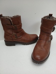 Bottines Dorothy Perkins doublées fausse fourrure double boucle taille UK 6 en marron.
